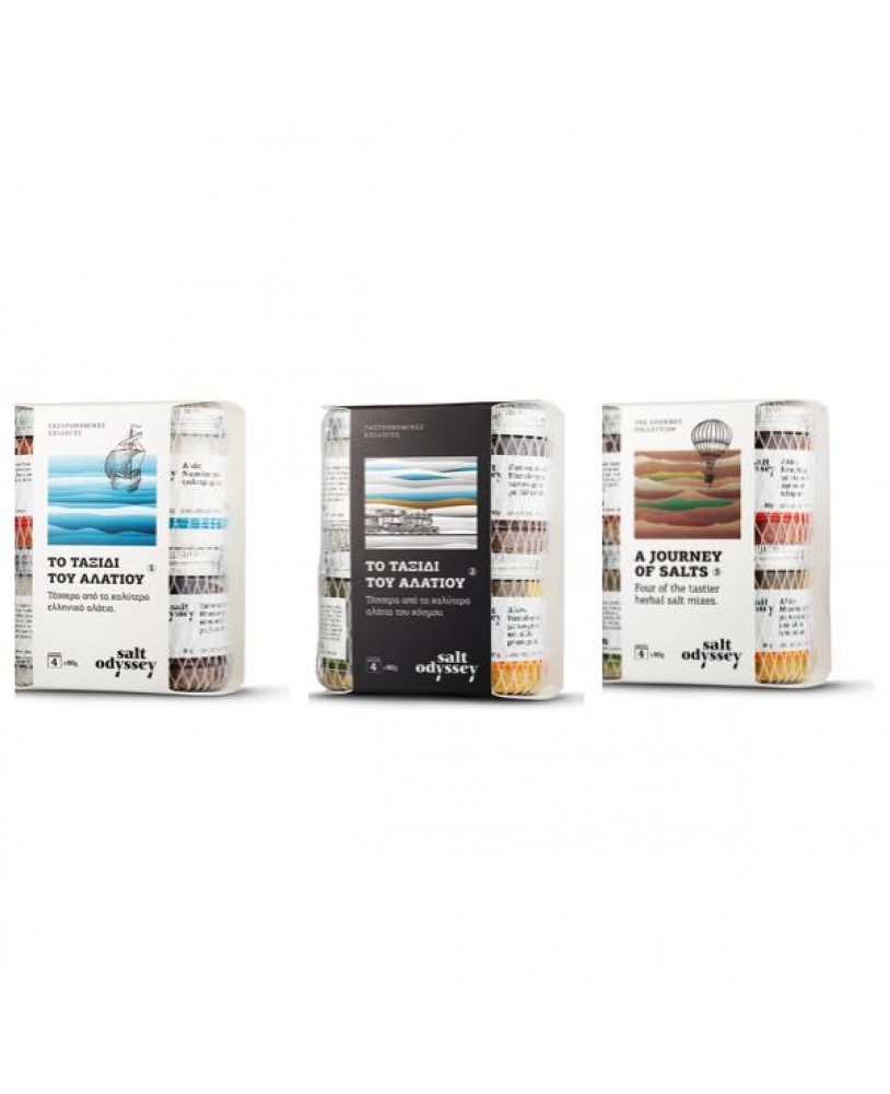 GIFTBOX No2 (Smoked beachwood salt-Sea salt-Himalyan salt with tumeric-Salt with oregano)